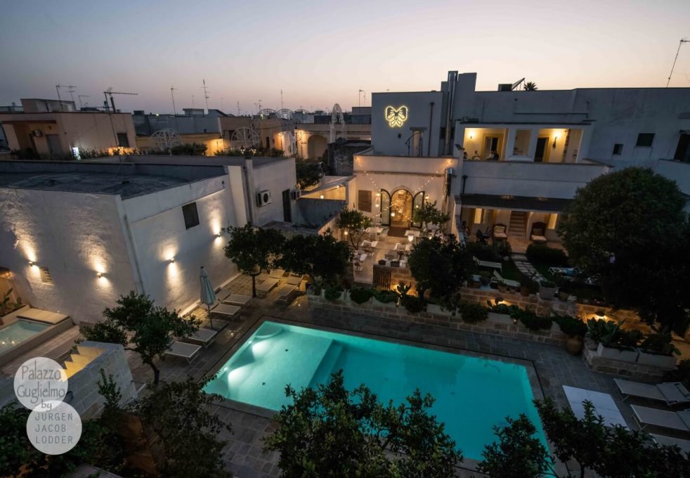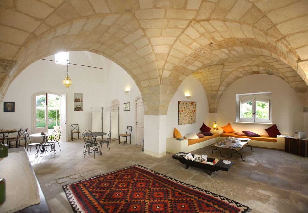 All’esterno la piscina, la corte interna e il salotto all’aperto nel grande aranceto; all’interno la sala dove vengono servite le colazioni ed al primo piano i tre saloni che costituivano la zona di rappresentanza prospiciente la piazza e che oggi ospitano una zona dedicata alla socialità ed al relax, con una piccola biblioteca, una sala bar ed una sala lettura, a volte utilizzata per eventi.